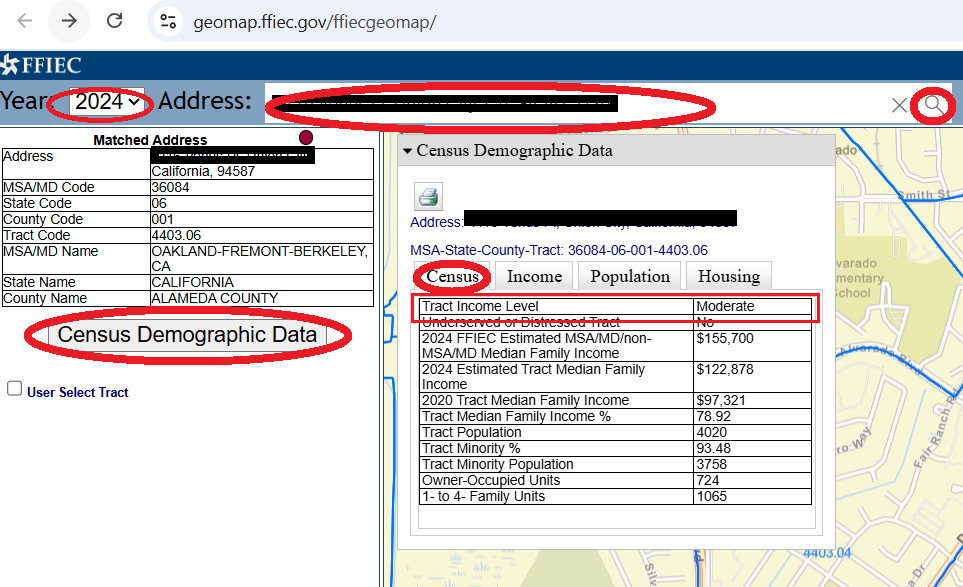 - Check the “Track Income Level“. To qualify, it must be listed as Moderate or Low.