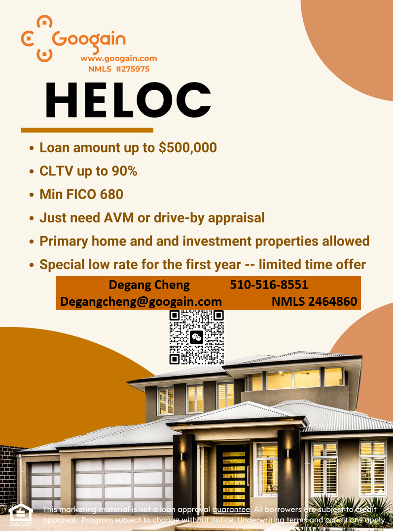 Googain heard your needs, and proudly announced the new HELOC program, which will help you use your home equity wisely to maximize its value.
